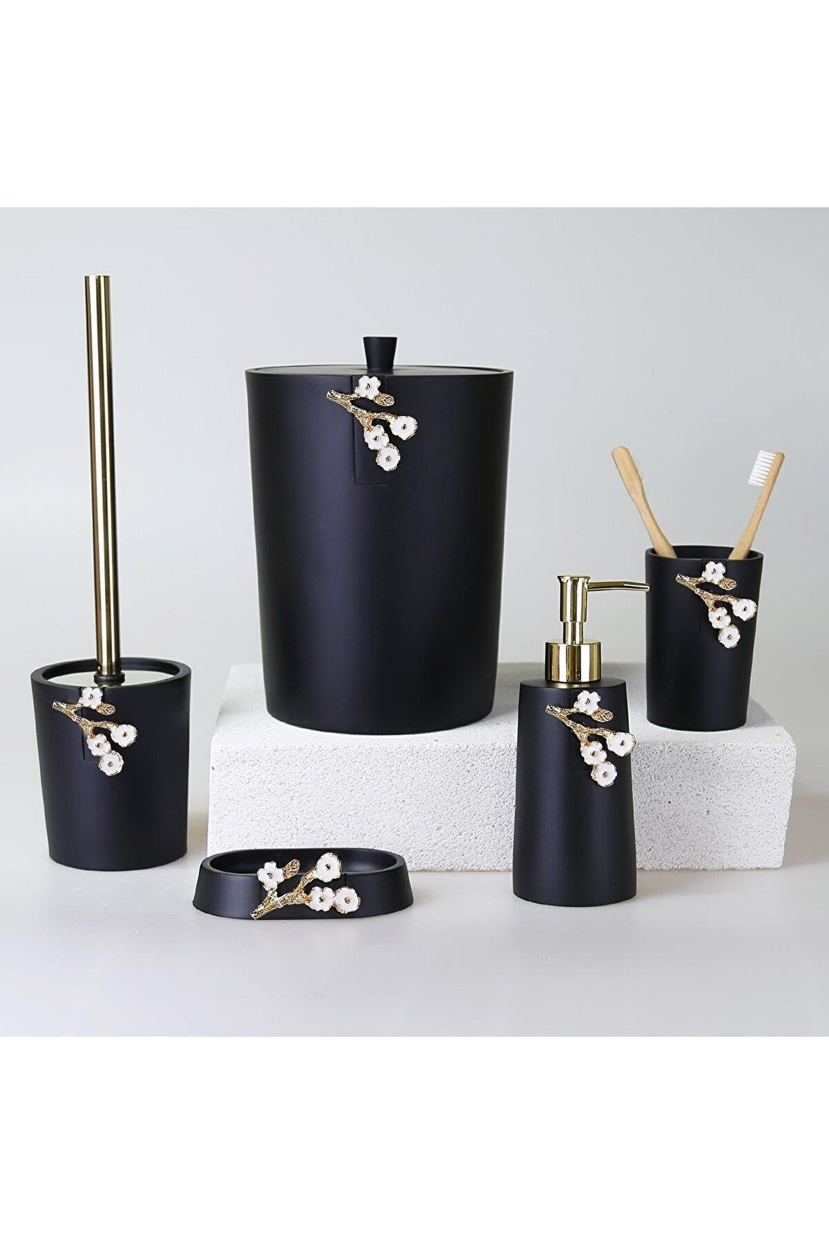 By Selim Bergamo Siyah 5 Parça Polyester Banyo Seti