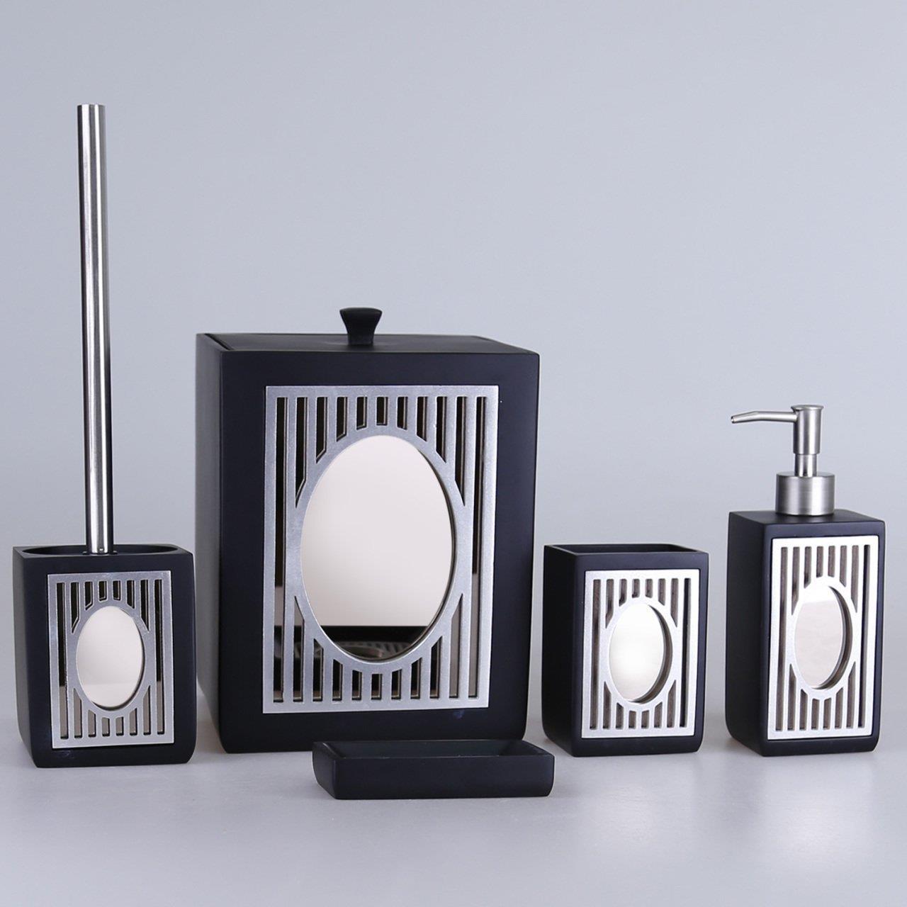 By Selim Glomour Siyah Gümüş Aynalı 5 Parça Polyester Banyo Seti
