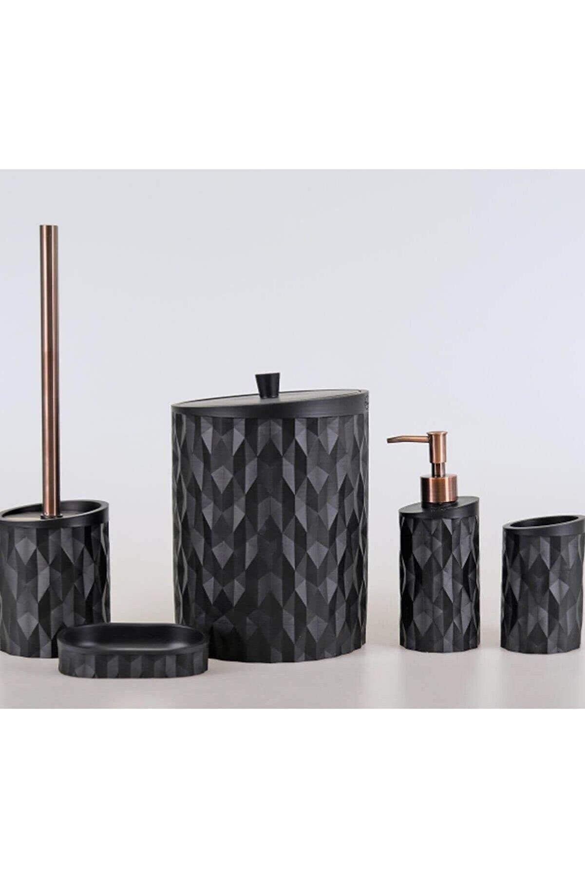 By Selim Prizma Siyah 5 Parça Polyester Banyo Seti