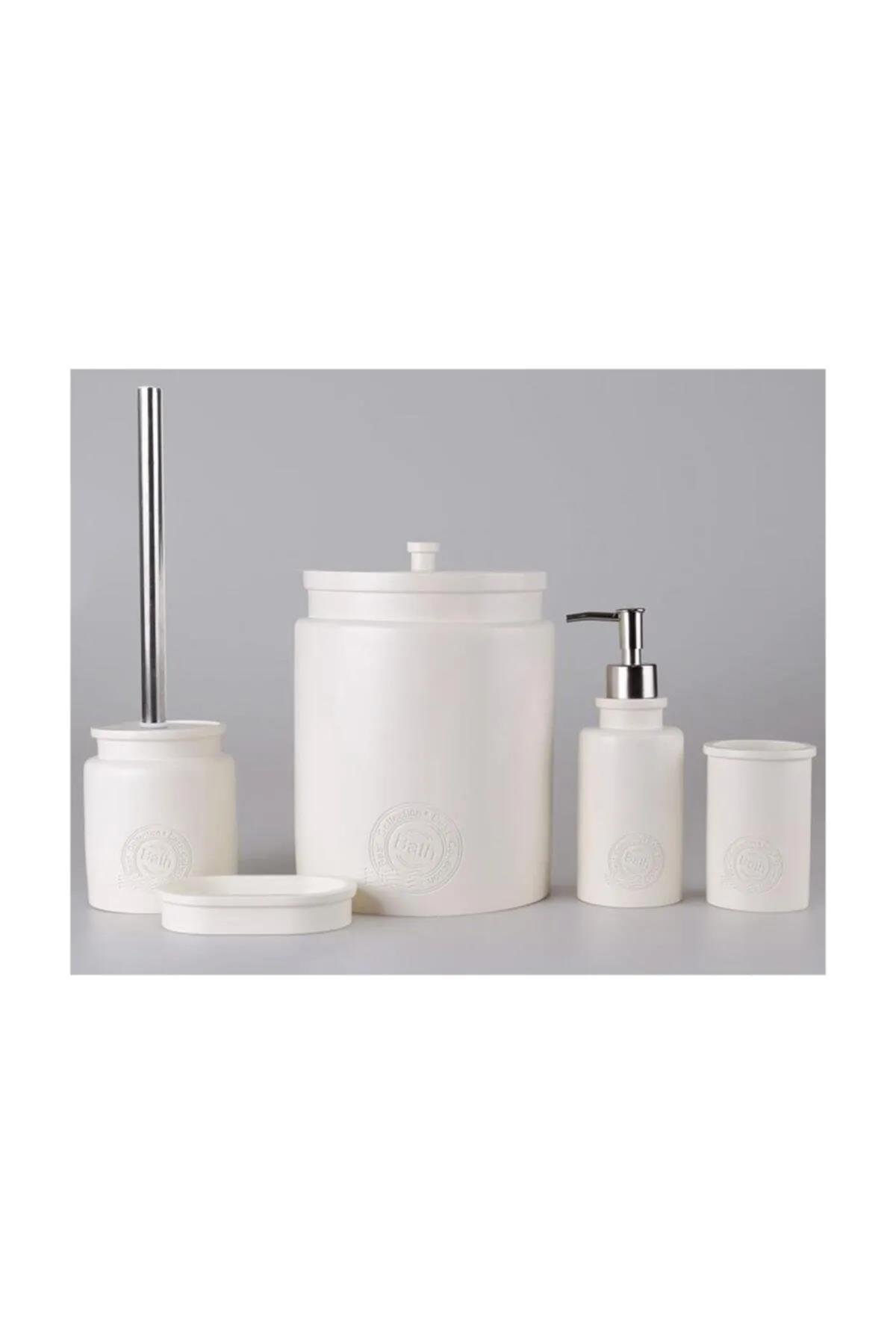 By Selim Stamp Krem 5 Parça Polyester Banyo Seti
