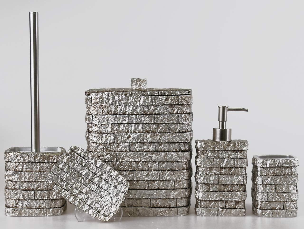 By Selim Stone Gümüş 5 Parça Polyester Banyo Seti