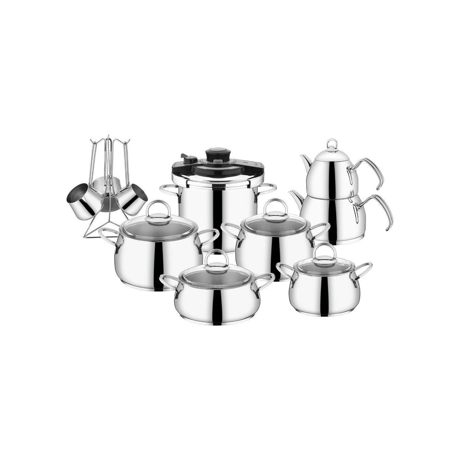 Kahramalar Akasya 18 Parça Platin Çelik Çeyiz Tencere Seti 2002-P